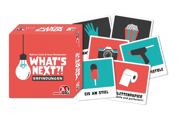 WHAT’S NEXT?! ist ein Quiz mit einem ganz besonderen Spielprinzip, das so einfach wie genial ist: 5 Erfindungen liegen offen auf dem Tisch. Eine sechste kommt dazu. Findet heraus, welche der 5 Erfindungen der 6. Erfindung zeitlich am nächsten ist. Wer den besten Tipp abgegeben hat, bekommt Punkte.